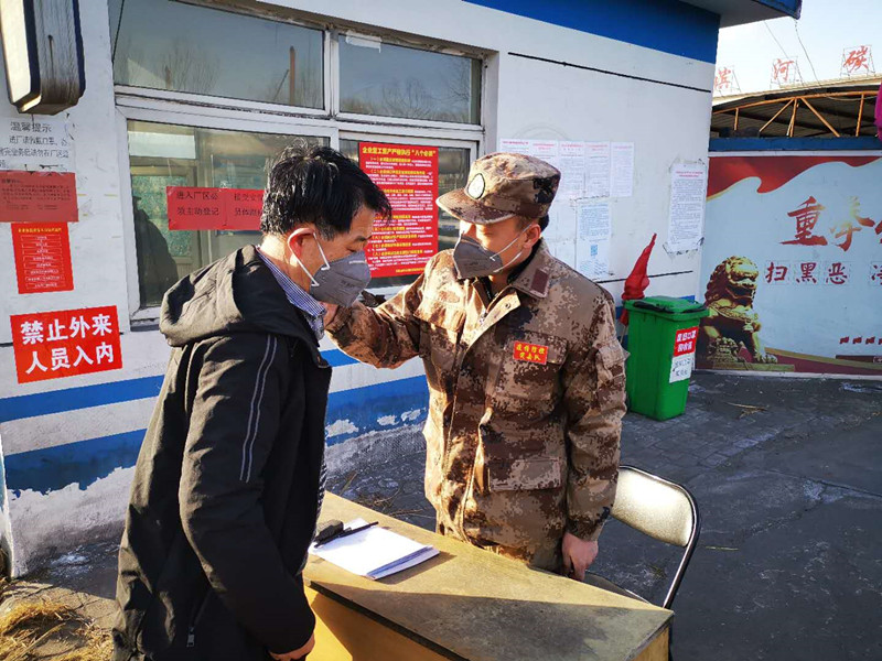 “請(qǐng)靠邊停車(chē),我們需要給車(chē)輛消毒,請(qǐng)您下車(chē)做詳細(xì)登記并測(cè)量體溫。”11點(diǎn)半不是上下班時(shí)間,雖然偶有人車(chē)進(jìn)出,但郗余亮?xí)r刻堅(jiān)守在刺骨的寒風(fēng)中,檢查過(guò)往人員和車(chē)輛,嚴(yán)格執(zhí)行公司對(duì)新冠肺炎疫情防控的各項(xiàng)要求?!耙咔楫?dāng)前,我作為公司員工,又是民兵,有責(zé)任也有義務(wù)沖鋒在前保護(hù)全廠員工和企業(yè)的安全,為了早日戰(zhàn)勝疫情,再苦再累我都能克服。”郗余亮說(shuō)。